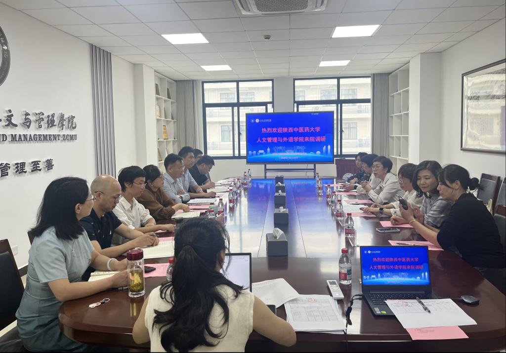 2025年10月16日下午,陕西中医药大学人文管理与外语学院院长欧阳静一行6人来我院调研学科建设与人才培养工作。浙江中医药大学人文与管理学院院长周尚成、副院长荣超和张红霞以及相关科室负责人参加了交流会。会议由周尚成院长主持。