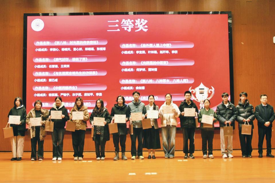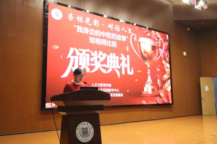 杏林蕴温情,光影传人文。12月24日下午在富春校区图书馆学术报告厅,人文与管理学院隆重举办了“我身边的中医药故事”短视频比赛颁奖典礼与专家讲座。中医药文化研究院院长黄文秀教授、省政协陈永馨委员、校团委书记唐冲、校教务处丁玮玮老师、文管师生与获奖学生代表齐聚一堂,共同见证光影中的杏林故事,聆听了一场温暖的医学与人文对话。活动由副院长张红霞教授主持。