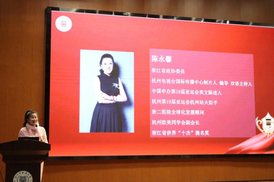 浙江省政协委员、杭州电视台国际传播中心制片人、编导兼双语主持人陈永馨,结合自身在国际舞台和对外文化传播领域卓越的从业经验,引用她作为第19届亚运会双语陈述人所亲历的数个生动案例,给师生们完美传达了如何做好优秀传统文化的世界表达,如何向世界讲好中医药故事。她的致辞娓娓道来,既有国际关系的角度、国家形象的高度,又有国际传播的理论深度与实践宽度,还有弘扬中医人文的温度与助力中医药出海的热度。