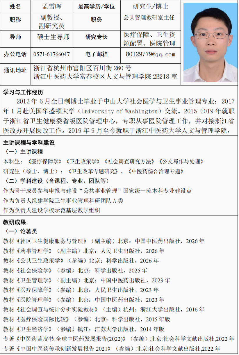 浙江中医药大学人文与管理学院