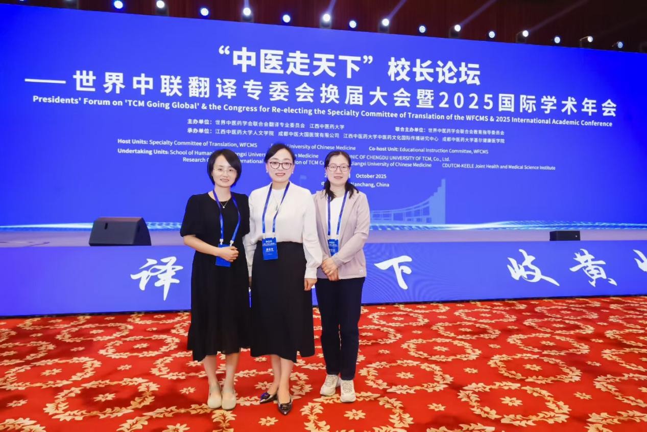 10月11日,“中医走天下”校长论坛——世界中医药学会联合会翻译专委会换届大会暨2025国际学术年会在江西南昌开幕,来自国内外40余所高校、科研院所的中医翻译与国际传播专家齐聚一堂,共同探讨“中医走天下”之道。我院张红霞教授和袁芳老师受邀参加本次会议。