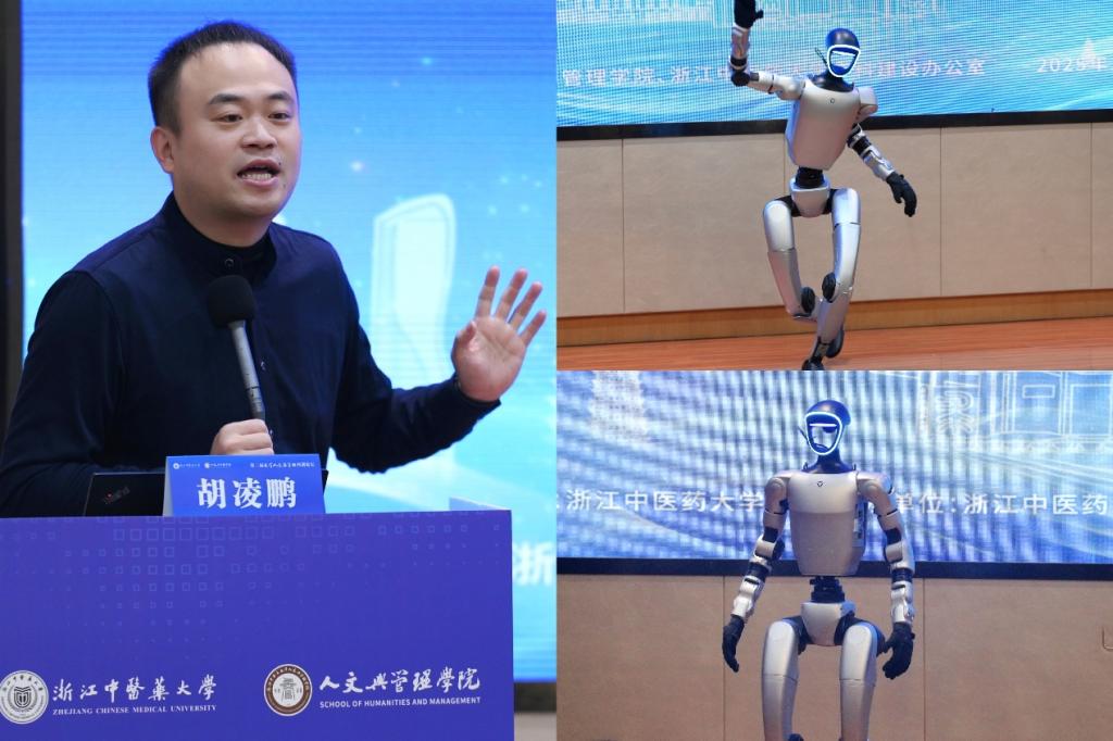 圆桌论坛期间,胡凌鹏展示了经二次开发的人形机器人,其流畅精准的动作表演引来阵阵掌声,生动呈现了 AI 技术与中医药场景结合的可能性。