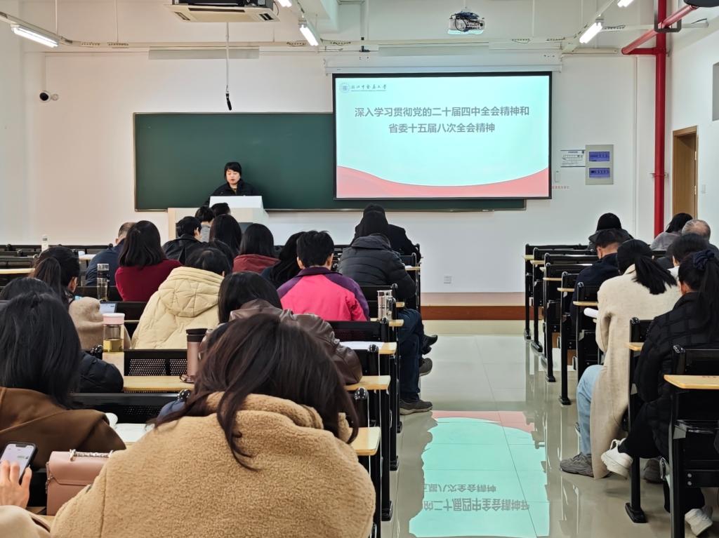 接下来,学院党委书记梁泽华进行了党的二十届四中全会精神与省委十五届八次全会精神的专题宣讲,引导全体教职工深刻领会核心要义,统一思想认识,凝聚发展合力。随后,梁书记就教职工因私出国(境)管理政策进行了宣讲,对相关审批流程、纪律要求等作了详细说明,进一步规范了教职工出国(境)管理。