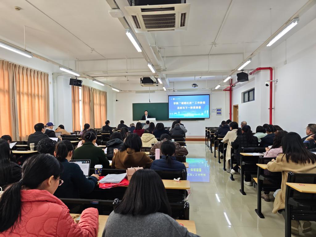 会上,学院院长周尚成传达了学校“晾晒比拼”工作会议精神,并就学院“晾晒比拼”工作进行阶段总结与下一阶段部署。周院长首先分享了学院排名暂列前茅的喜讯,接着详细梳理了前期各项工作成果,明确了下一阶段“晾晒比拼”的重点任务与目标方向,强调全院教职工应持续以“晾晒比拼”为抓手,对标先进、查找不足,推动学院各项事业提质增效,共同营造务实进取、创先争优的良好氛围。