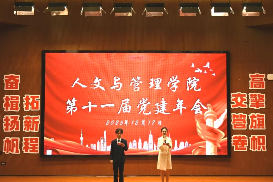 六、举办2025年第十一届党建年会暨党支部工作述职考评交流会。以“高擎旗帜交答卷,奋楫扬帆拓新程”为主题,学院师生齐聚,隆重举行人文与管理学院第十一届党建年会暨党支部工作述职考评交流会,共话党建成果,共绘发展蓝图。
