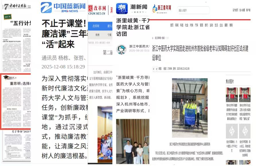 三、学院省级及以上新闻媒体报道创新高。全年累计在学习强国、中国中医药报、中国蓝新闻、改革网、潮新闻、浙江新闻周刊等各级媒体平台上发布24篇新闻报道,创历史新高,营造良好舆论氛围。