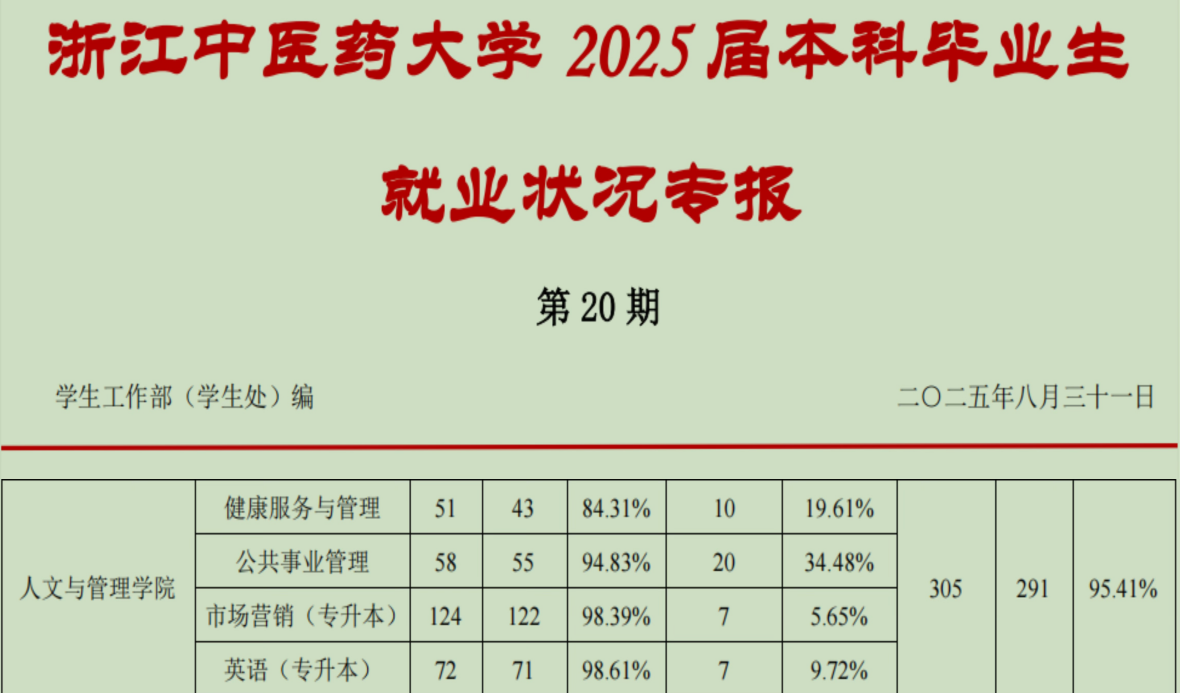 十、毕业生就业率、对母校满意度再创新高。学院2025届本科生本部就业率95.41%,滨江就业率88.46%,研究生就业率93.33%,实现离校就业率和初次就业率双达标;毕业生对母校总体满意度92.96%,用人单位满意度100%,整体再创新高。