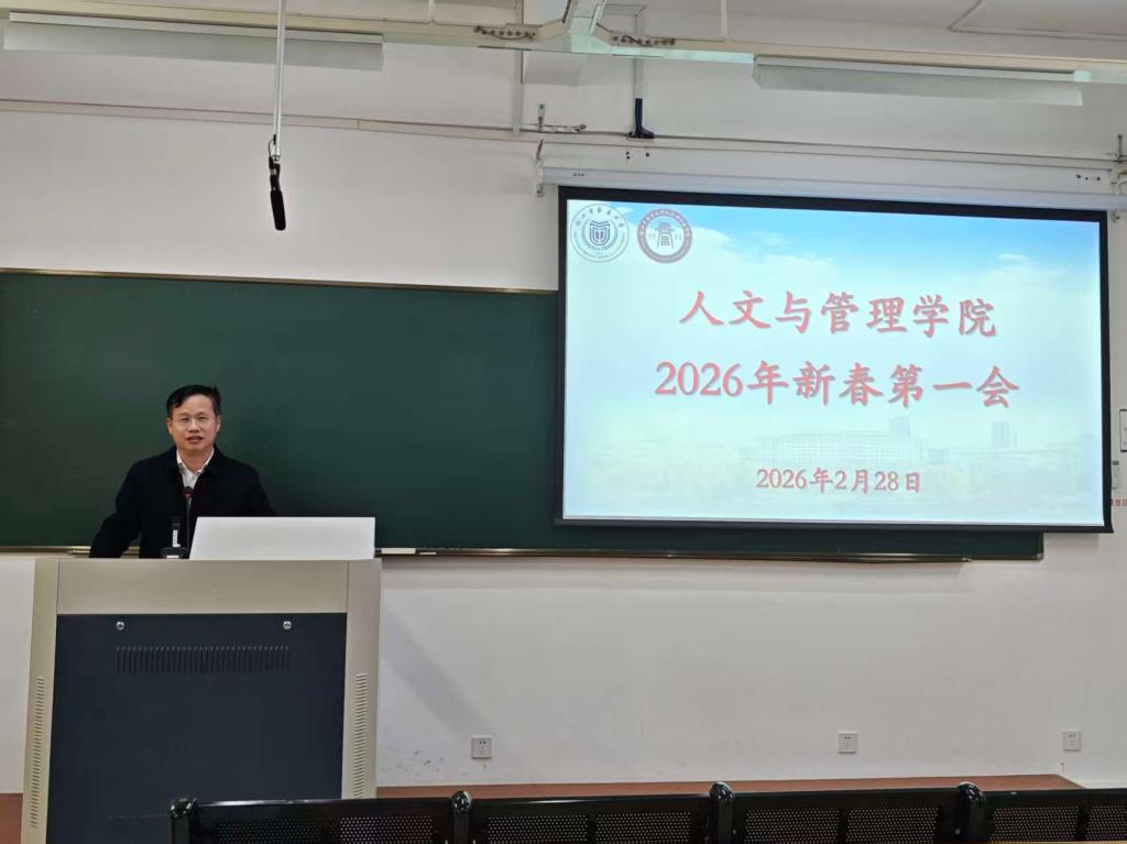 2月28日下午,人文与管理学院新春第一会暨全面从严治党工作会议在富春校区人文楼2B303召开。学院党委书记梁泽华主持会议,全体教职工参加。